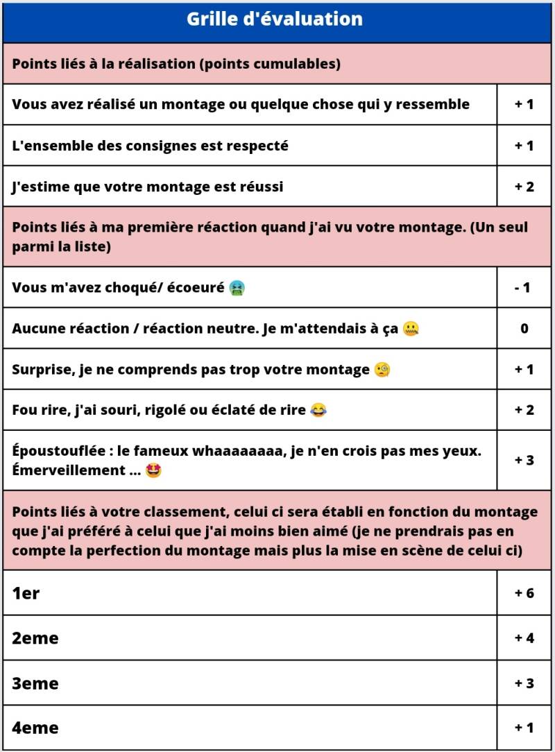 Comme d'habitude, vous avez jusqu'à 23h59 et pas une minute de plus pour m'envoyer votre montage sur WhatsApp (message privé).