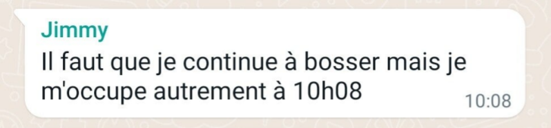 Remarque : le message du groupe WhatsApp a été envoyé à 9h26. Soit après sa réponse reçu à 9h18. Ce message n'est donc pas prit en compte.